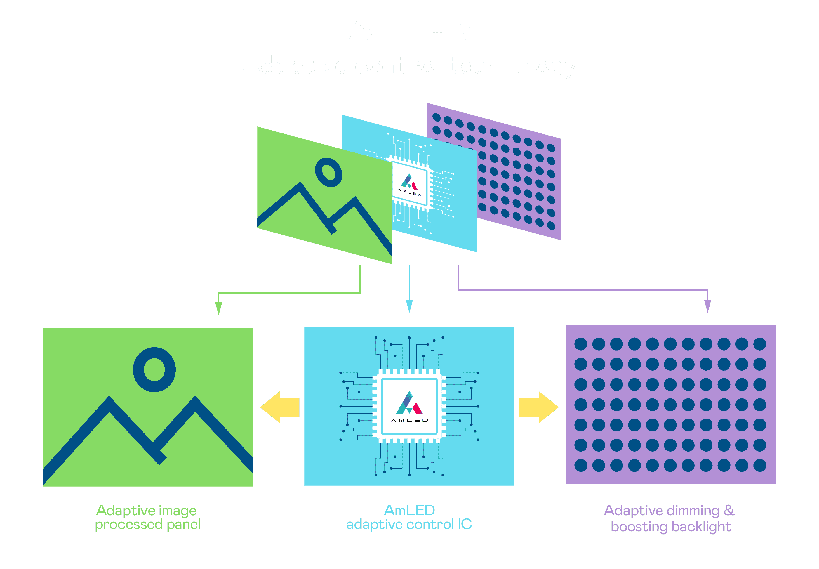 AmLED 具备更省电与低蓝光特性。。。与一般的 LED 背光显示技术相比,,,由于 AmLED 常时处于局部调光状态,,其功耗仅有前者的 50% 左右,,同时 AmLED 还具备低蓝光特性,,,,满足长时间使用的护眼需求。。