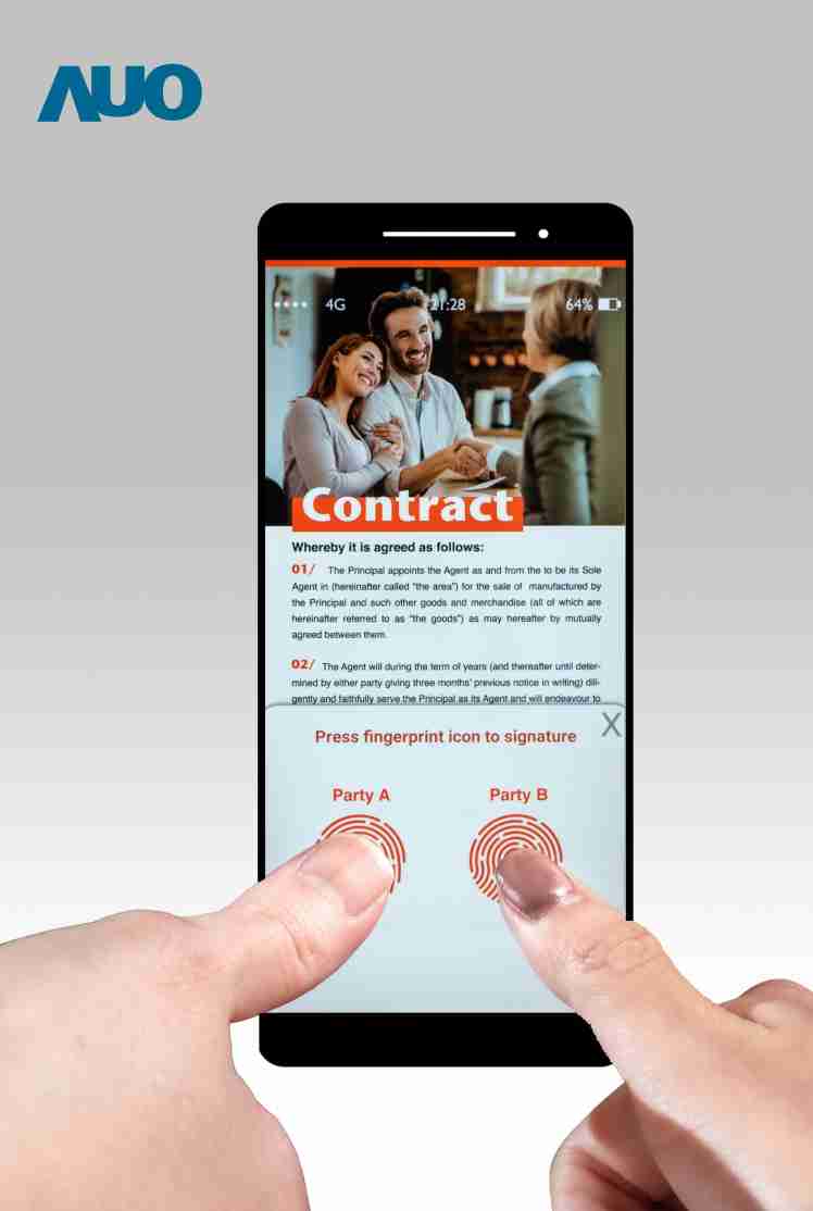 z6尊龙结合指纹辨识、、、、触控、、显示的三合一 LCD 面板提供 50 毫米x 50 毫米的大感测面积,,,多指指纹辨识特别适用金融交易,,,,大幅提升安全性。。