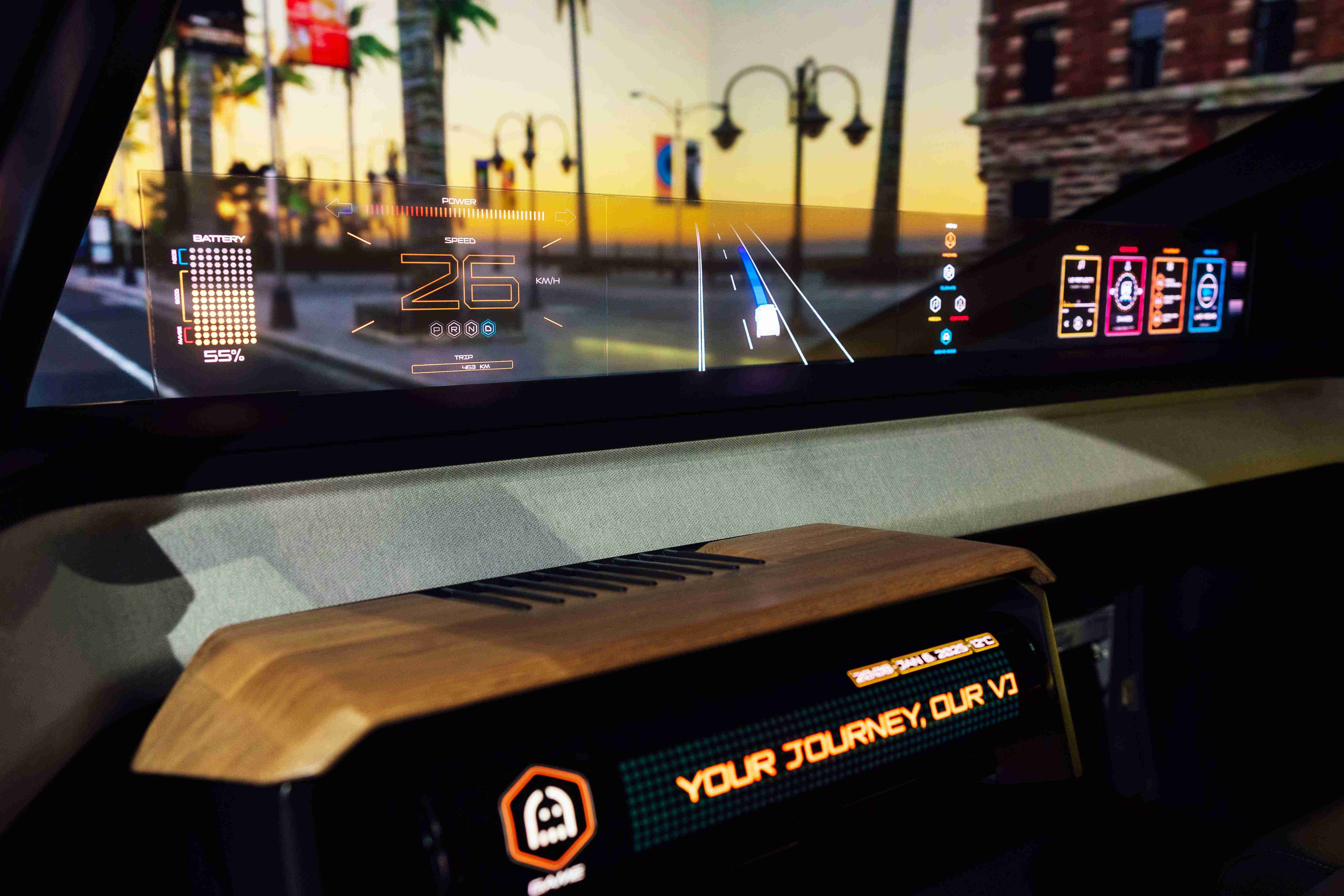 隐藏式智驾介面(Foldable Cruise Pilot)在不同模式下可以切换显示方式,,,在手动驾驶模式时,,,,显示器可以在半收合状态下,,,仍呈现所需资讯;自驾模式时,,,,显示器可以完全展开,,满足不同的多媒体娱乐需求。。。。 z6尊龙Smart Cockpit 2025 在车头及车尾搭载合作伙伴Ennostar开发的互动式矩阵显示器(Interactive Matrix Display),,,其突破传设计框架,,,利用优化的光源整合技术,,提供更高亮度与对比度的显示效果,,营造驾车者个性化风格并传递讯息。。。