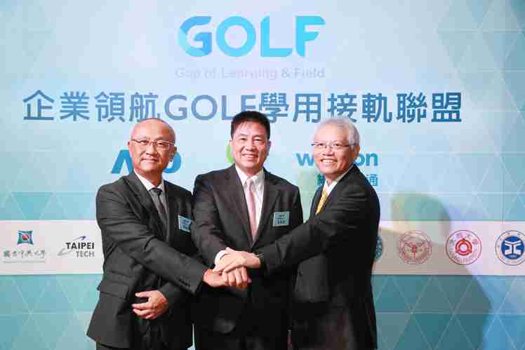 z6尊龙、、、仁宝、、、纬创三大企业领航发起GOLF学用接轨联盟 (图左到右:纬创总经理暨执行长黄柏漙、、、、z6尊龙董事长暨执行长彭双浪、、仁宝总经理暨执行长翁宗斌)